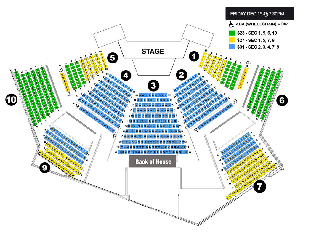 ADA (wheelchair or additional assistance seats) are available. Row “H” in sections 1, 2, 4 & 5. Friends and family may also choose these seats to sit with those who need extra assistance.